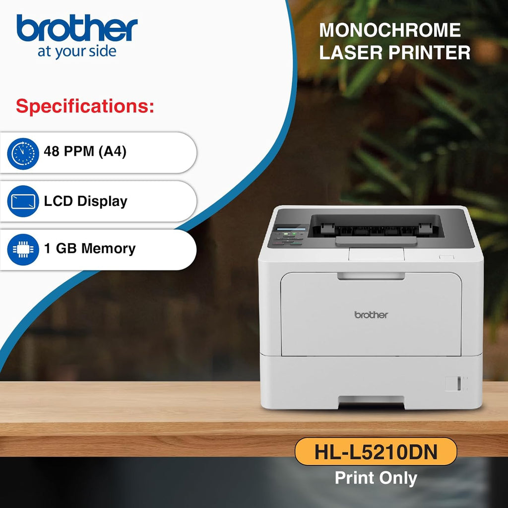 The Brother HL-L5210DN A4 Mono Laser Network Printer is engineered for speed, efficiency, and reliability in busy office environments. With fast output of up to 48 pages per minute, automatic duplex printing, and network connectivity, it ensures seamless workflow integration. This special bundle includes a BONUS LT5505 250-Sheet Paper Tray for expanded paper capacity and an extra Genuine TN3605 Black Toner Cartridge (3,000-page yield), delivering outstanding value and productivity out of the box.