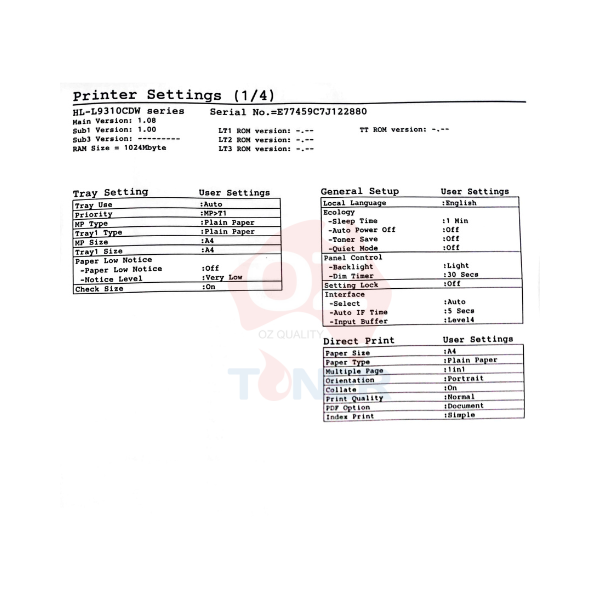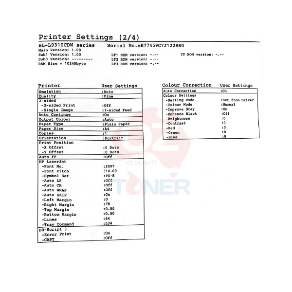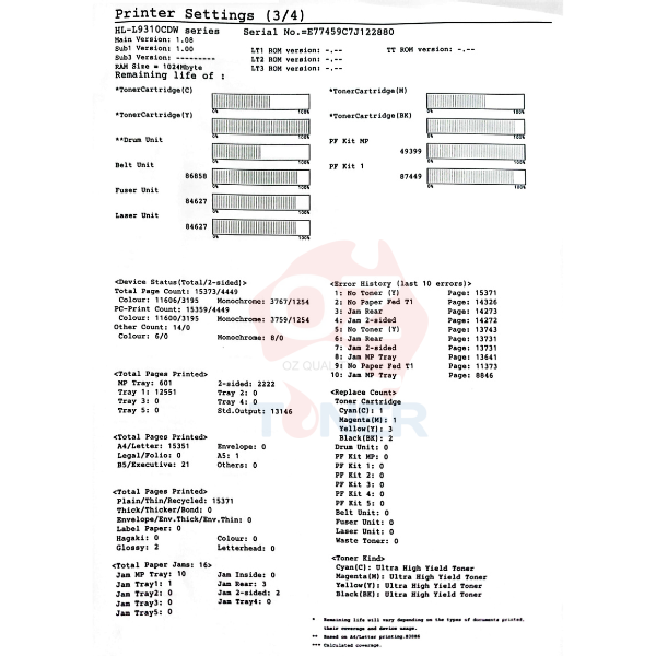 Toner Level: B/C/M/Y 90%/70%/70%/100% (Toner Level As Is)