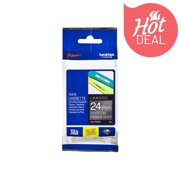 *SALE!* Genuine Brother TZe-PR955 White on Premium Silver Laminated Label Tape for P-Touch Labeller (24mmx4M)