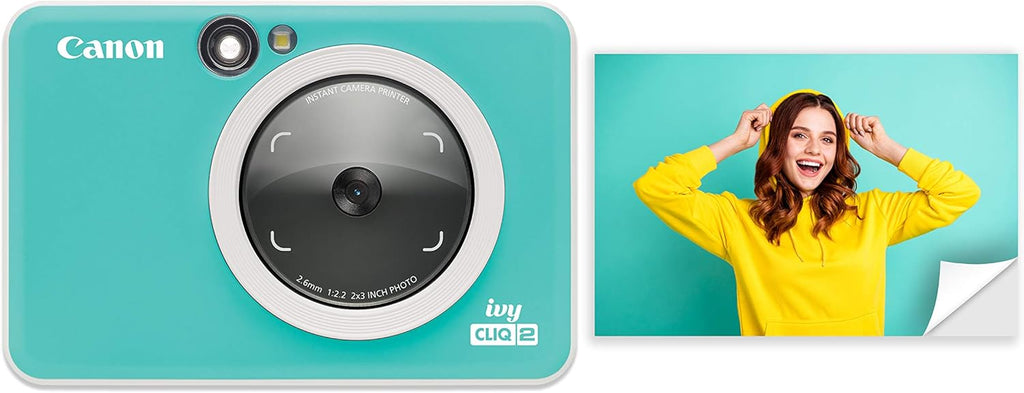 The Canon IVY CLIQ 2 is a pocket-sized instant camera and photo printer that lets you capture and print 2x3" photos on the spot. Utilizing ZINK (Zero Ink) technology, it produces smudge-free, water- and tear-resistant photo stickers without the need for ink cartridges. With a built-in selfie mirror, creative filters, and a microSD card slot, it's perfect for capturing memories on the go.