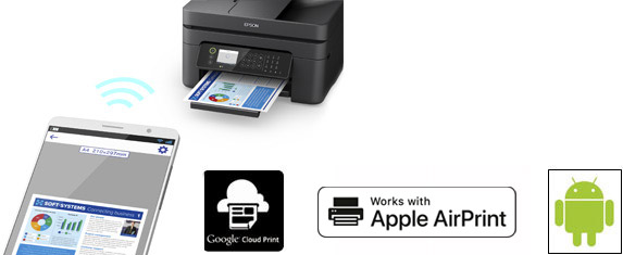 | MOBILE PRINTING | Epson Connect (Epson Email Print + Epson iPrint + Remote print driver) Apple AirPrint Google Cloud Print Scan to email |
