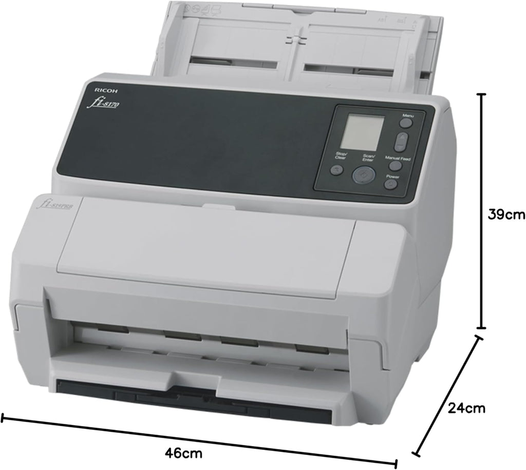 RICOH fi-8170 USB 3.2 Gigabit Ethernet LED Workgroup Scanner with ADF, Duplex, A4, 70ppm/140ipm