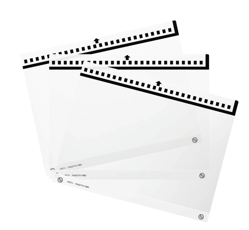 The Fujitsu Photo Carrier Sheet [PA03770-0015] is designed to safeguard delicate documents, such as photographs and postcards, during the scanning process. These transparent sleeves prevent scuffs and pressure marks when feeding items through the automatic document feeder (ADF) of compatible ScanSnap scanners.