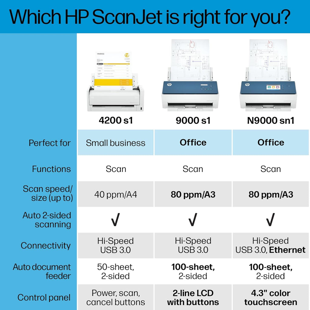 HP ScanJet Enterprise Flow N9000 sn1 is ideal for scanning wide-format documents, handling heavy workloads with ease, and offering network connectivity for seamless integration into office environments.