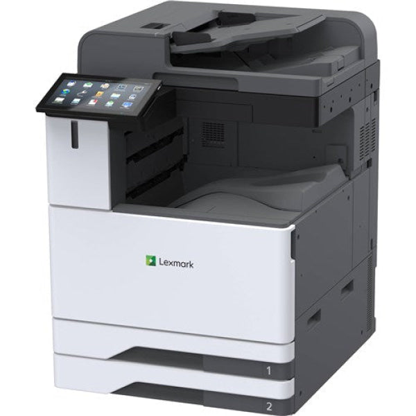 The Lexmark CX942adse large-format colour multifunction is designed for security, versatility and performance for large workgroups at speeds of up to 45 pages per minute*. Loaded with standard features, this model includes a 25 cm touchscreen, single-pass two-sided scanning with ultrasonic multifeed detection, Optical Character Recognition (OCR), and analogue faxing. There are several finishing options: staple finisher, staple hole-punch finisher, booklet finisher or Lexmark’s first trifold/Z-fold finisher. Built-in workflow solutions, like Scan Centre for simple document routing, plus software alliance solutions provide a variety of capture and printing applications to extend your business processes to the device.