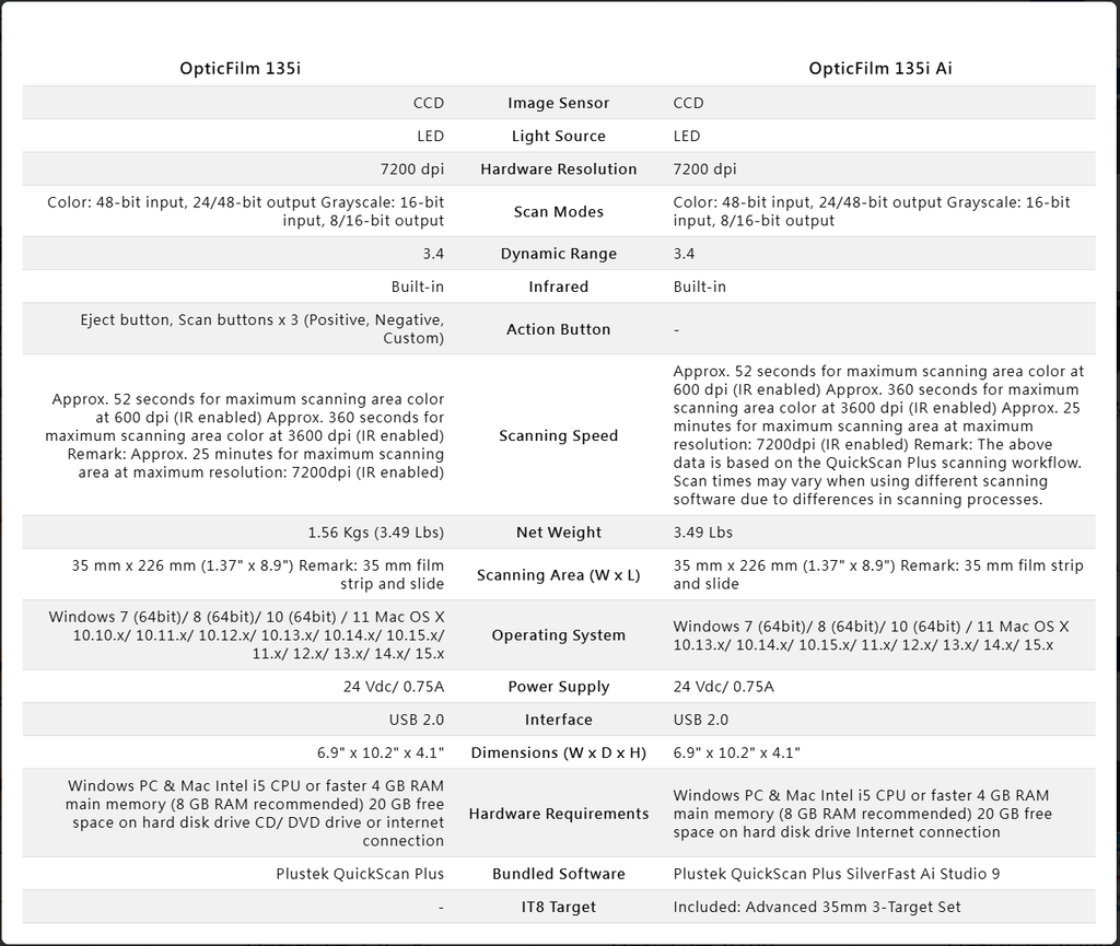 Software Included: QuickScan Plus, Plustek’s bundled scanning utility (SilverFast software optional in AI model)