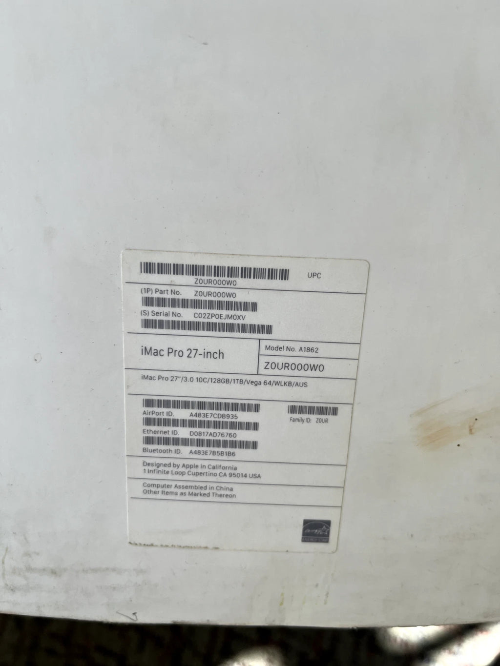 | Model | iMac Pro 27" |