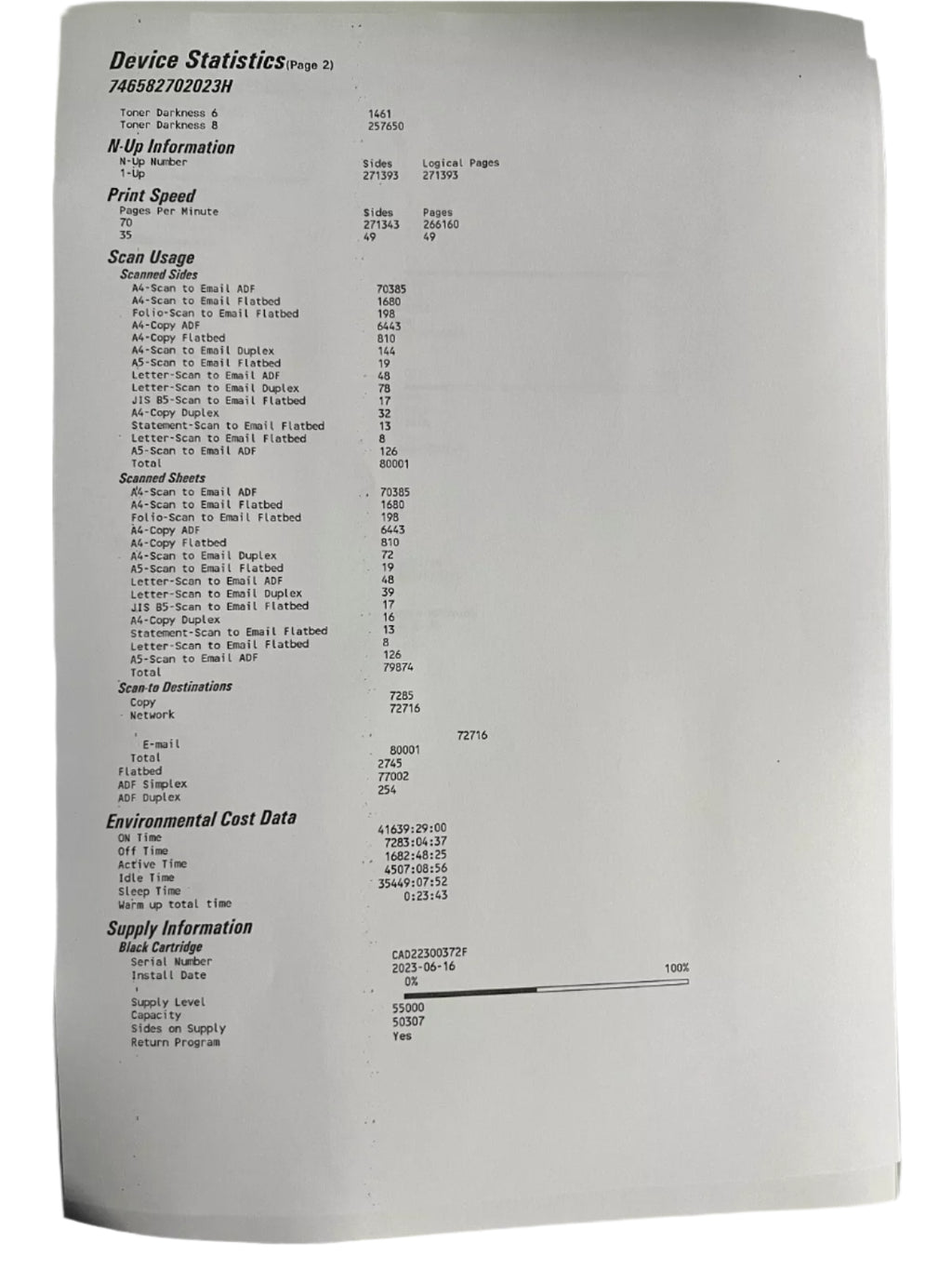 Condition Report: Ex-leasing unit in good working condition, with low page count and higher toner level, sold as was. 3-Months RTB Warranty for peace of mind.