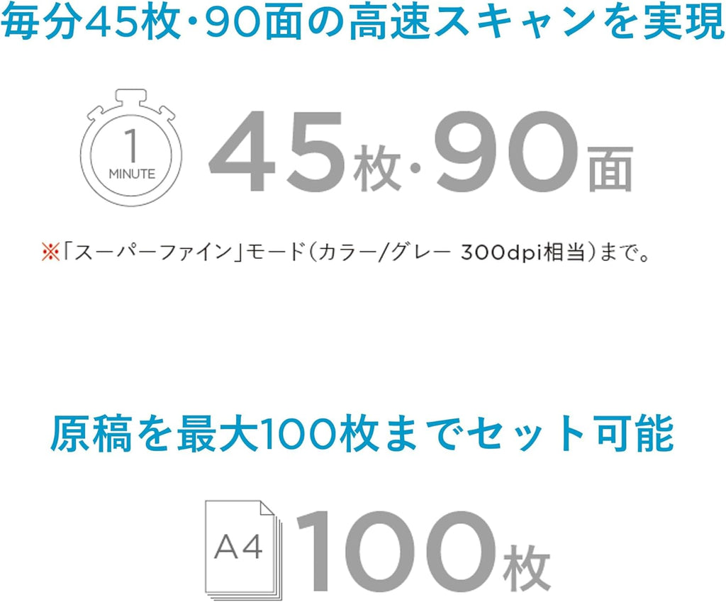 - ScanSnap's fastest 45 sheets per minute fast scan ever. Up to 100 manuscripts. Equipped with a next-generation SoC "iiGA" developed in-house for commercial scanners, this product achieves high-quality image processing even without a PC. Greatly improves your work efficiency