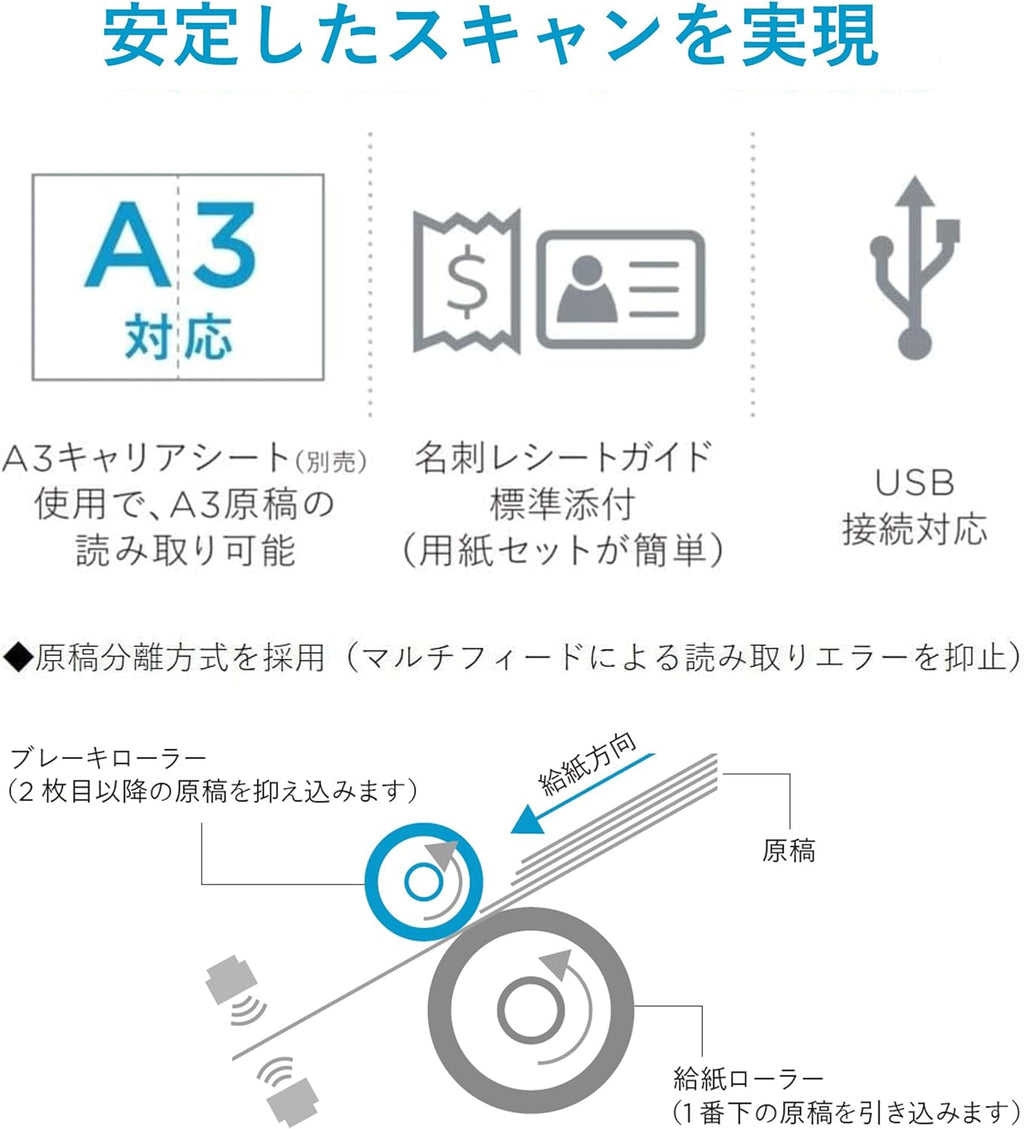 - 2.9 seconds fast boot, no complicated settings needed, easy to scan with just one button USB cable connector is Type-C Compatible with A3 manuscripts using the carrier sheet. High carrying performance and vertical reduction for stable scanning and document protection